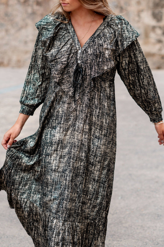 Long Dress Ruffle Sparkle Black Gold