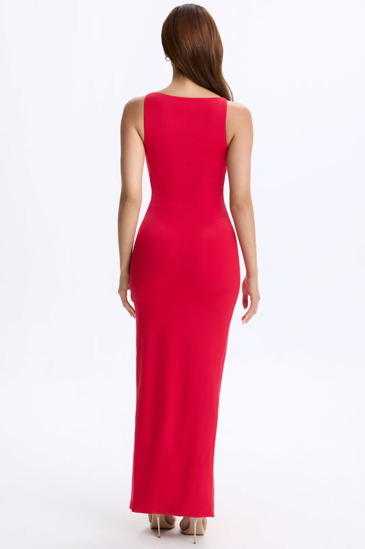 Plunge Cut-Out Maxi Dress in Cherry Red