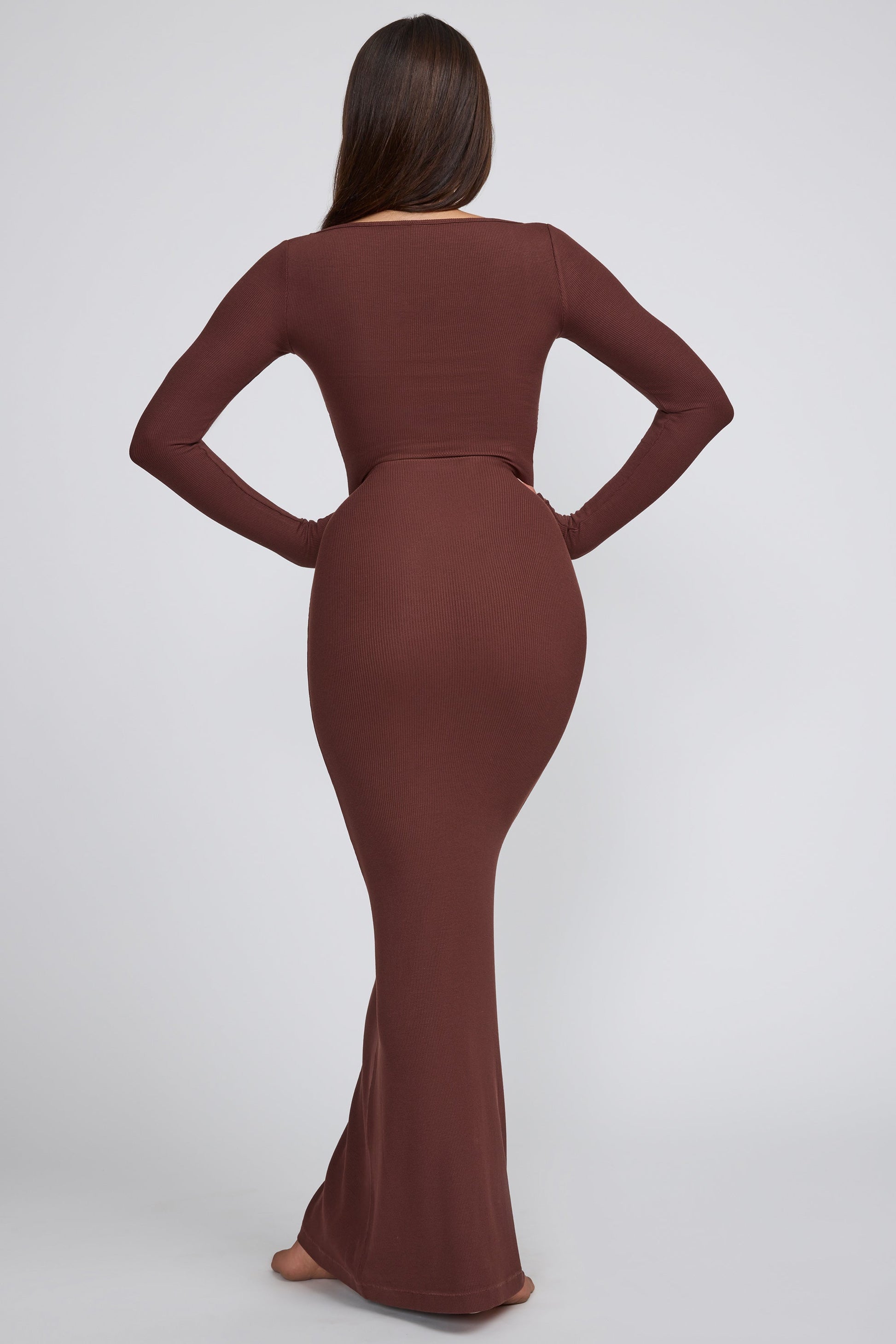 Ribbed Modal Long Sleeve Maxi Dress in Chocolate