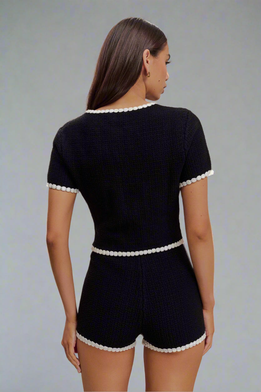 Polished meets playful in the Luna Knit Co-Ord Set—a textured two-piece featuring a cropped top with contrast scalloped trim and high-waisted matching shorts. With soft structure, vintage-inspired details, and just the right amount of charm, it's your go-to for brunch, errands, and easy summer styling.