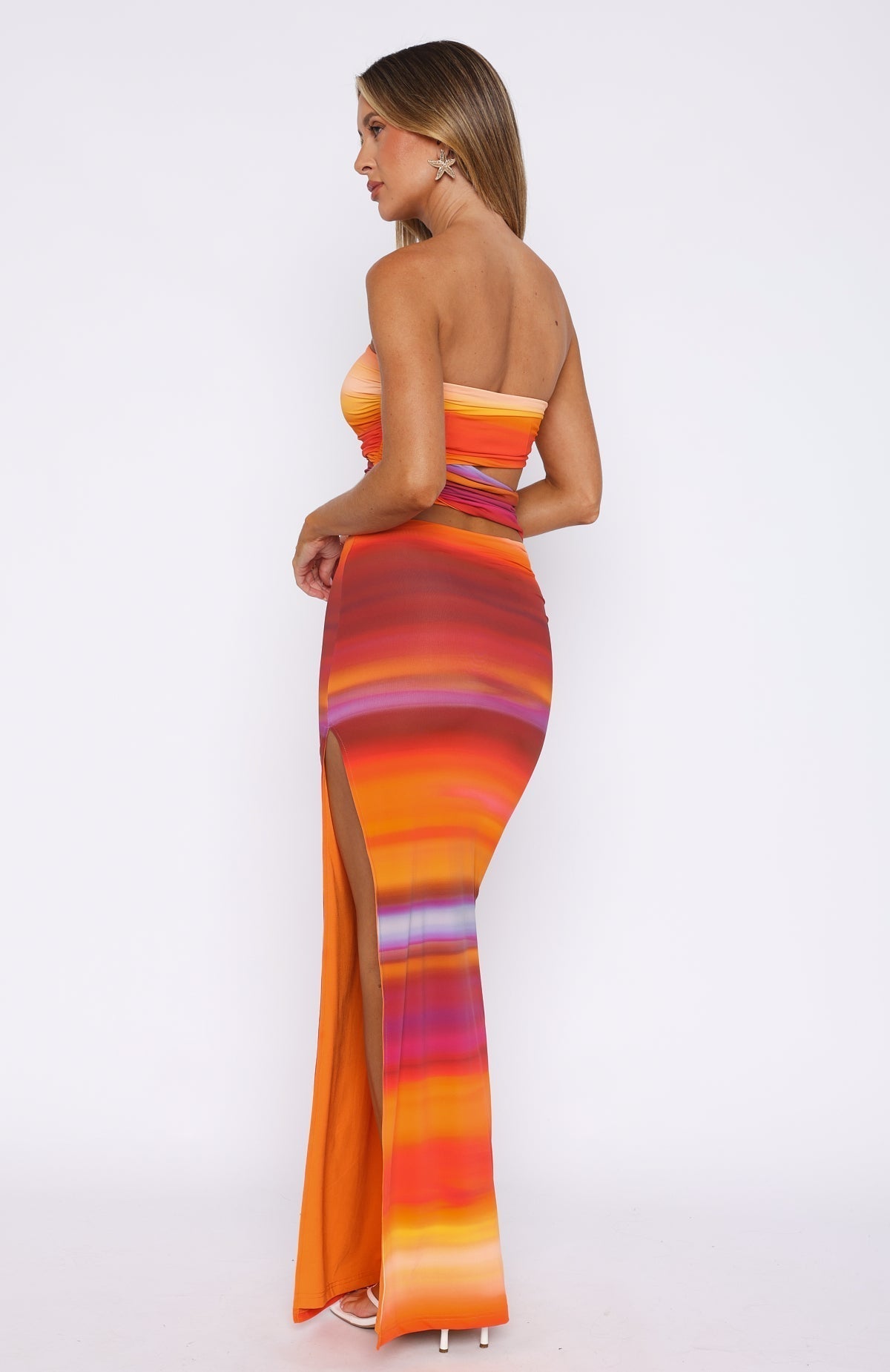 Breezy, chic, and ready for the resort—the Ocean Breeze Set features a high-rise gathered skirt with a side split hem and a matching strapless top. Made from stretchy, lined fabric, it delivers style, comfort, and warm-weather ease in one perfect set.