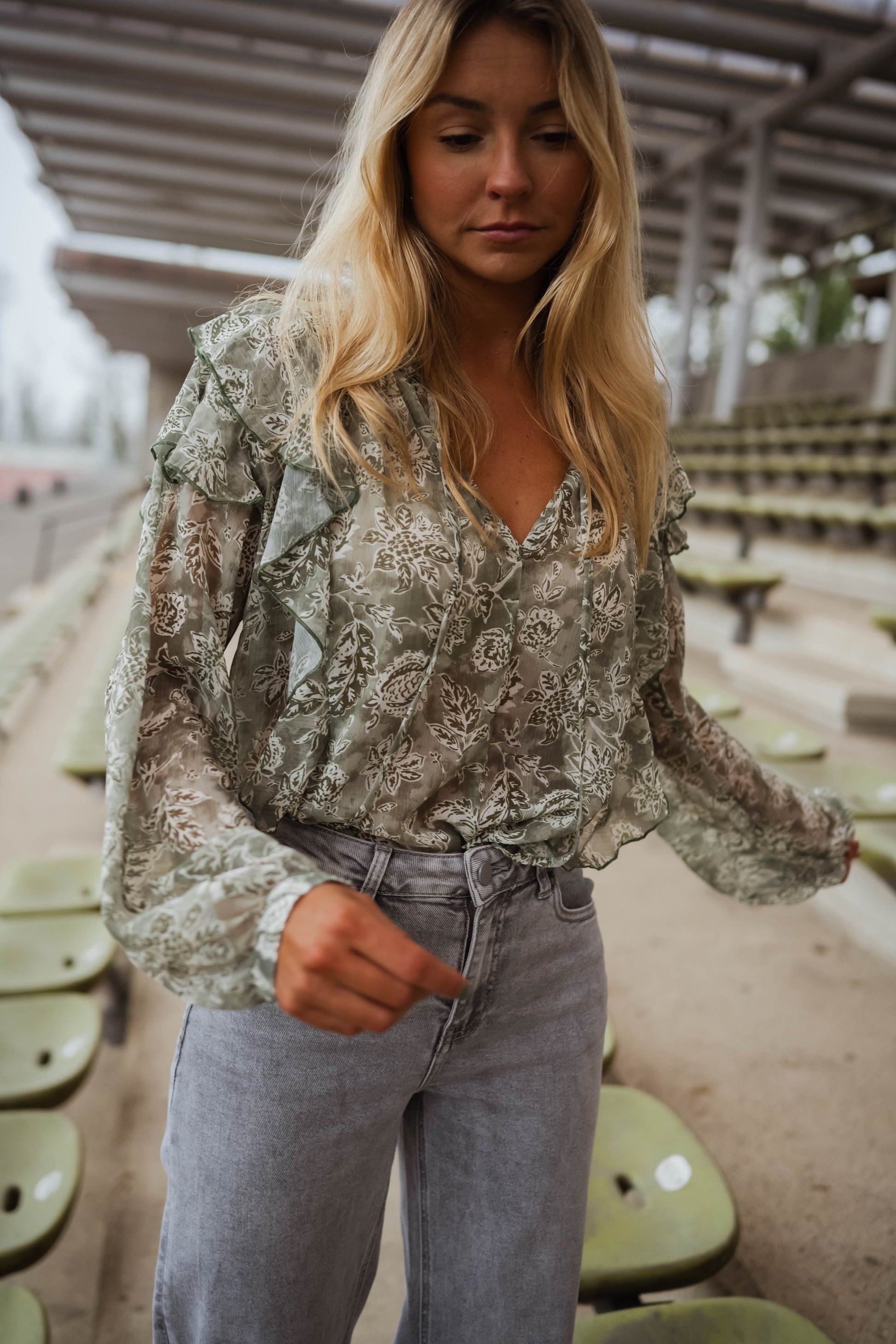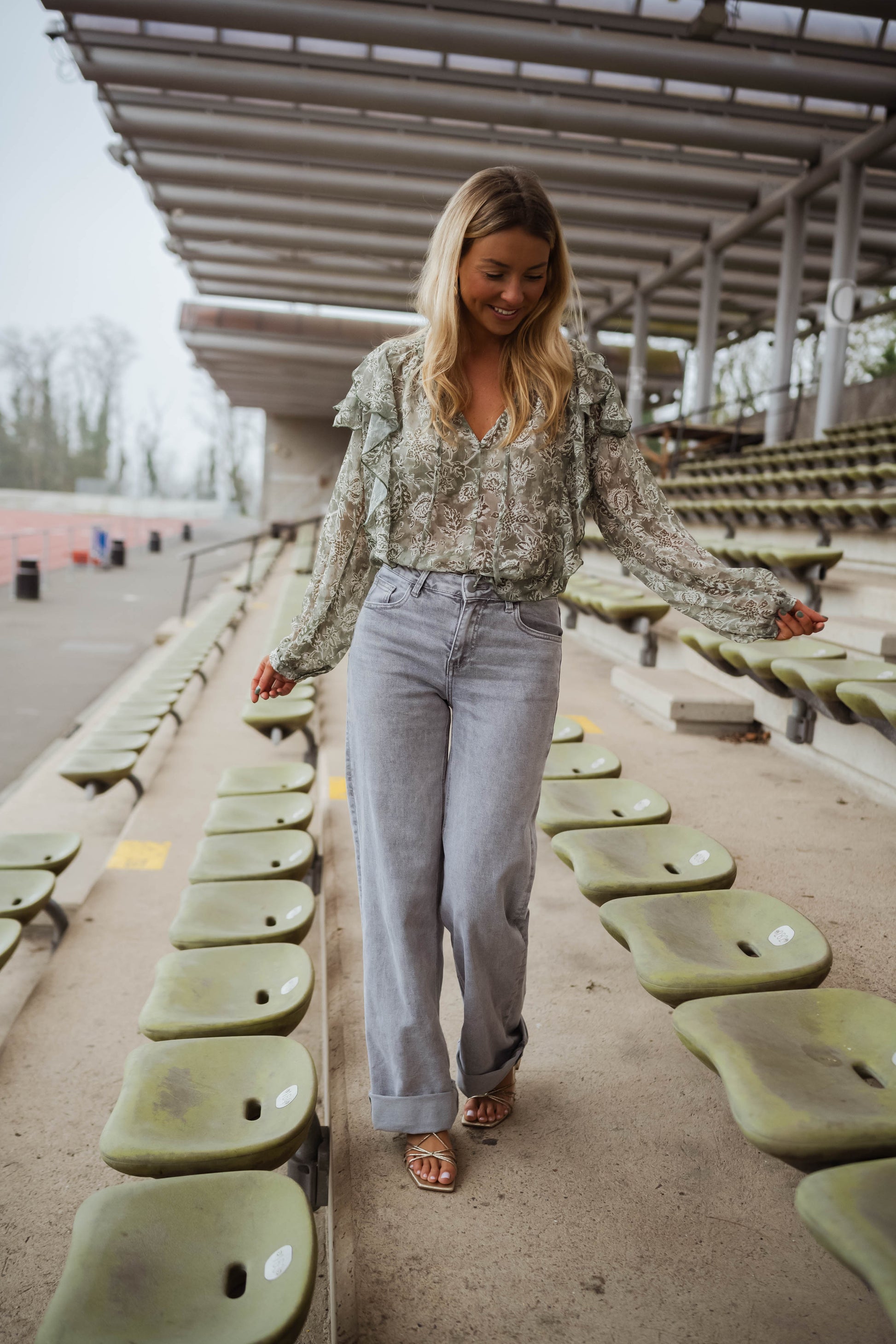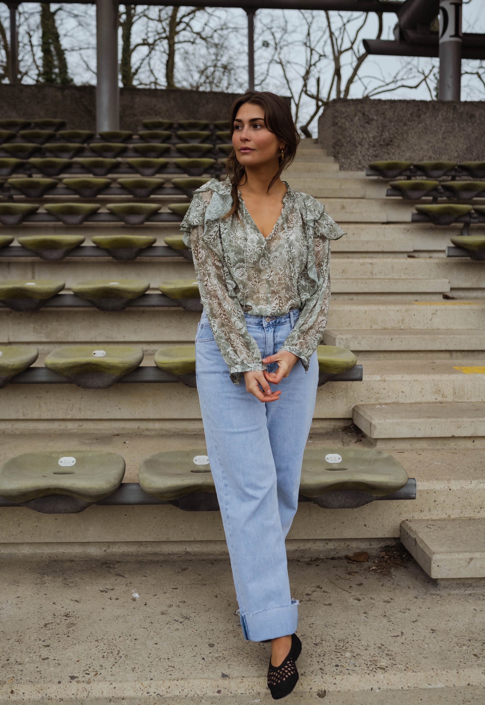 • Nos modèles portent le jeans Maddie bleu clair et le jeans Célestine gris clair