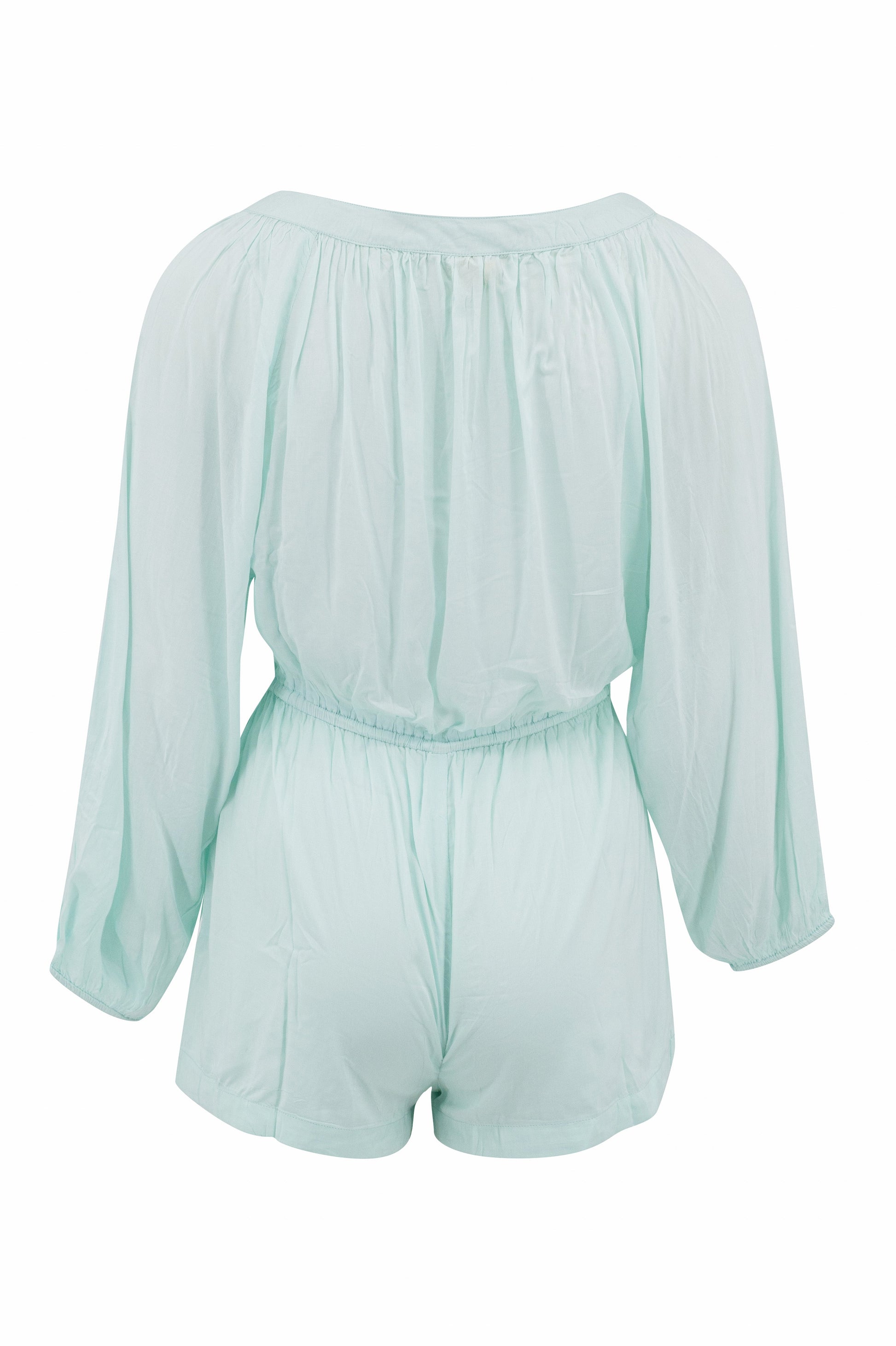 Échappe à la sensation de l'île avec la combinaison Amaia Mint d'IBZmode. Fabriquée à partir de 100 % de coton, cette combinaison de jeu offre un confort et un style ultimes. Les manches longues avec des bretelles élastiques et un nœud à la taille assurent un ajustement parfait. Porte-la avec des sandales pour un look chic et sans effort. Sens la liberté !