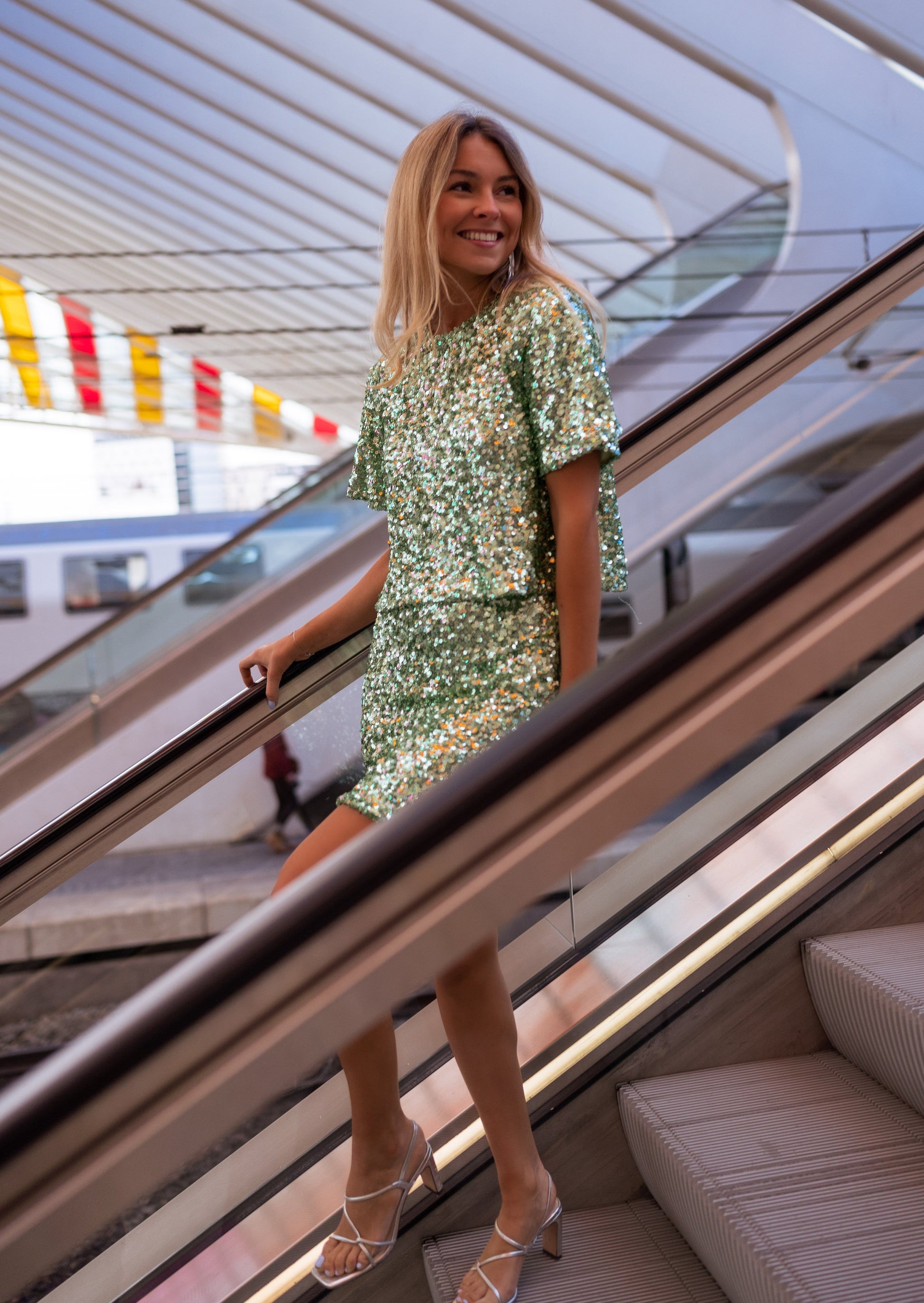 • Blouse assortie : Belita verte à paillettes