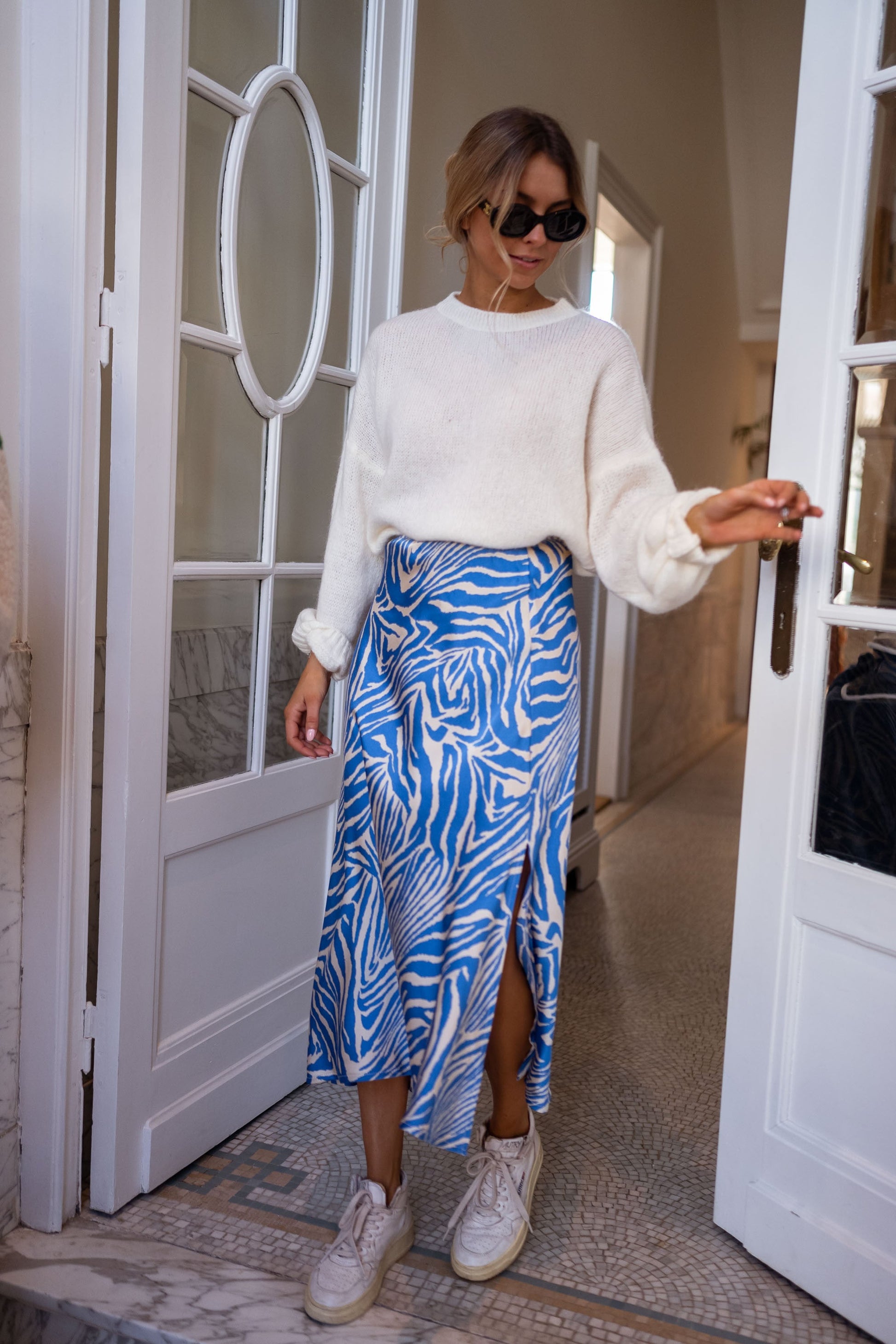 Jupe Sax zebrée - bleue et écrue