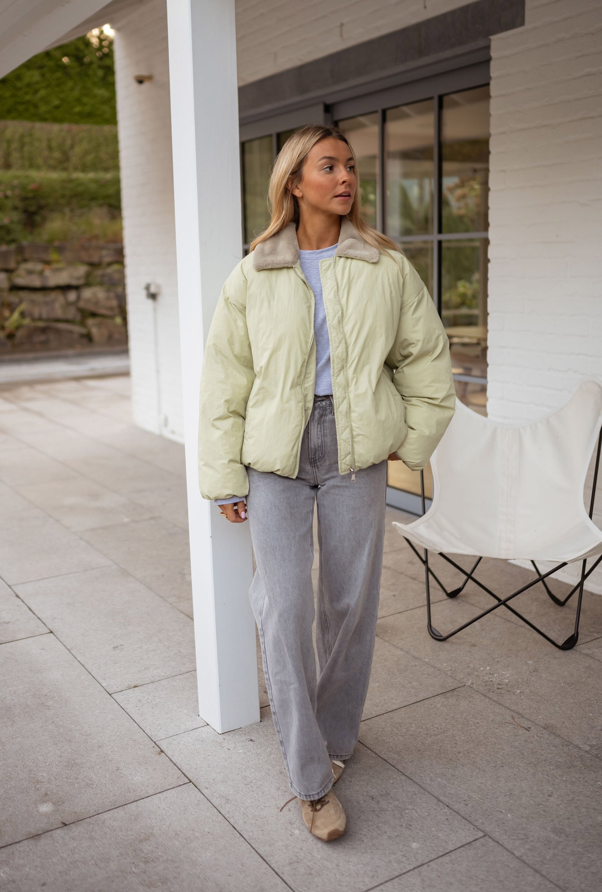 • Nos modèles portent le jeans Célestine gris clair et le t-shirt Juba gris
