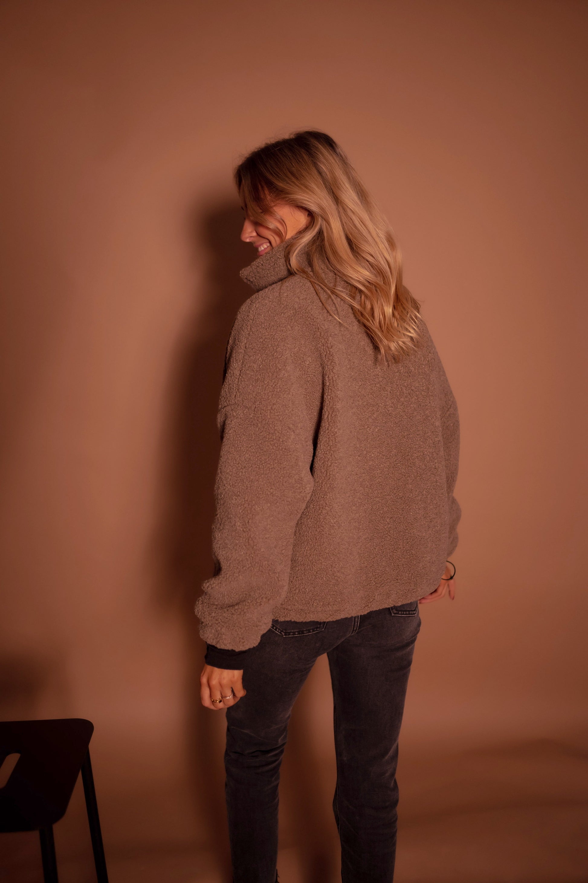• Notre modèle porte le jeans Baptiste gris et le sous pull fin Cathie