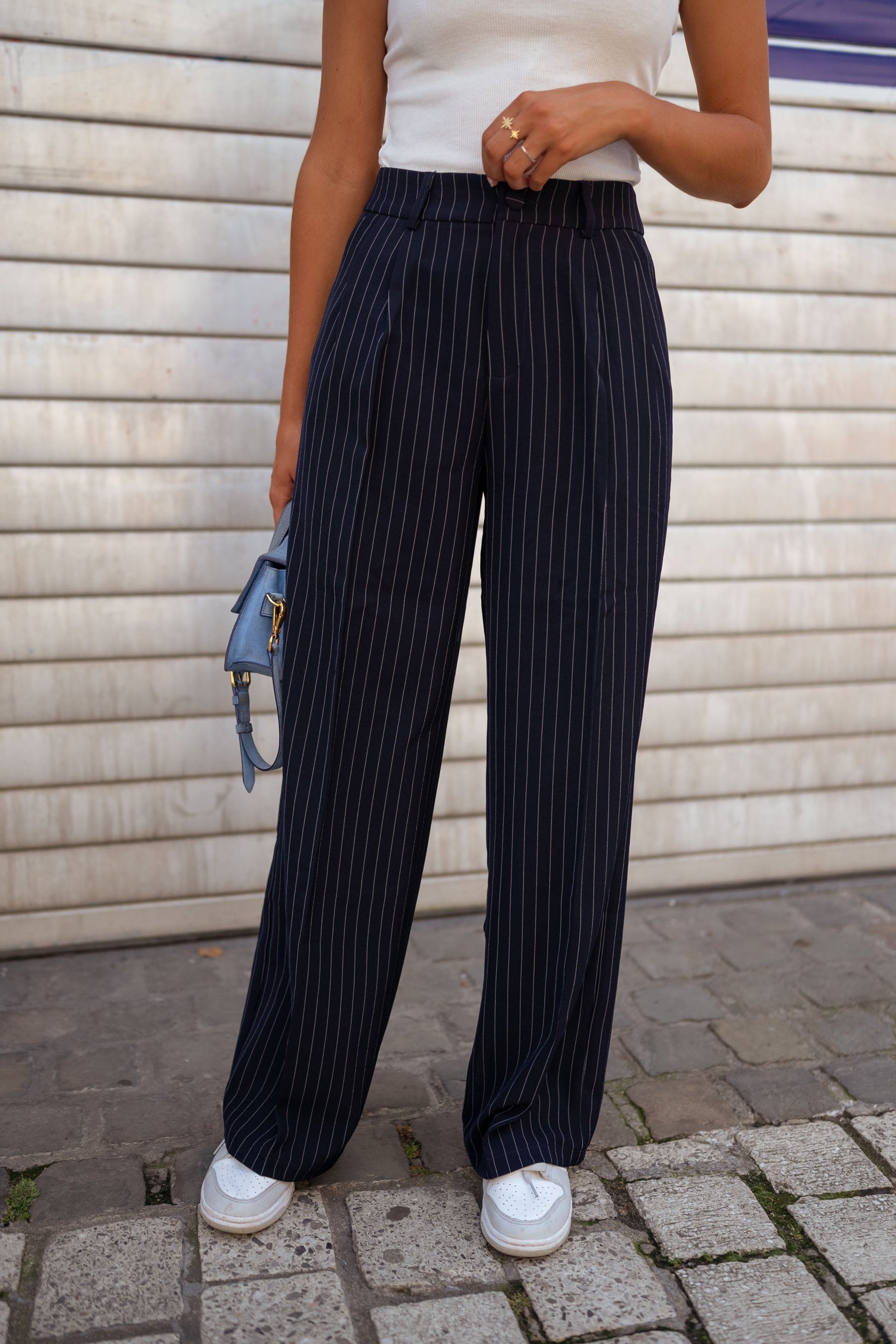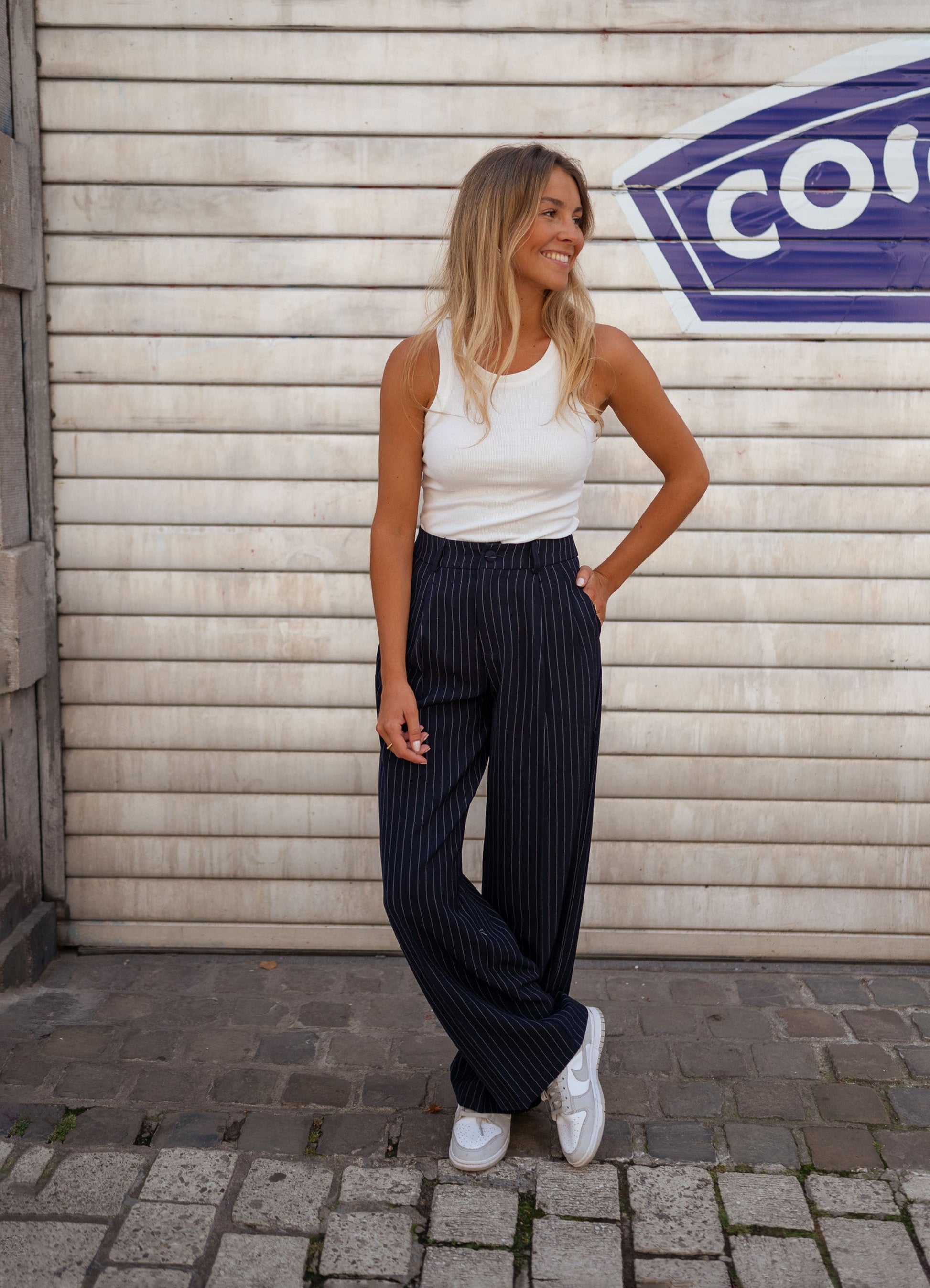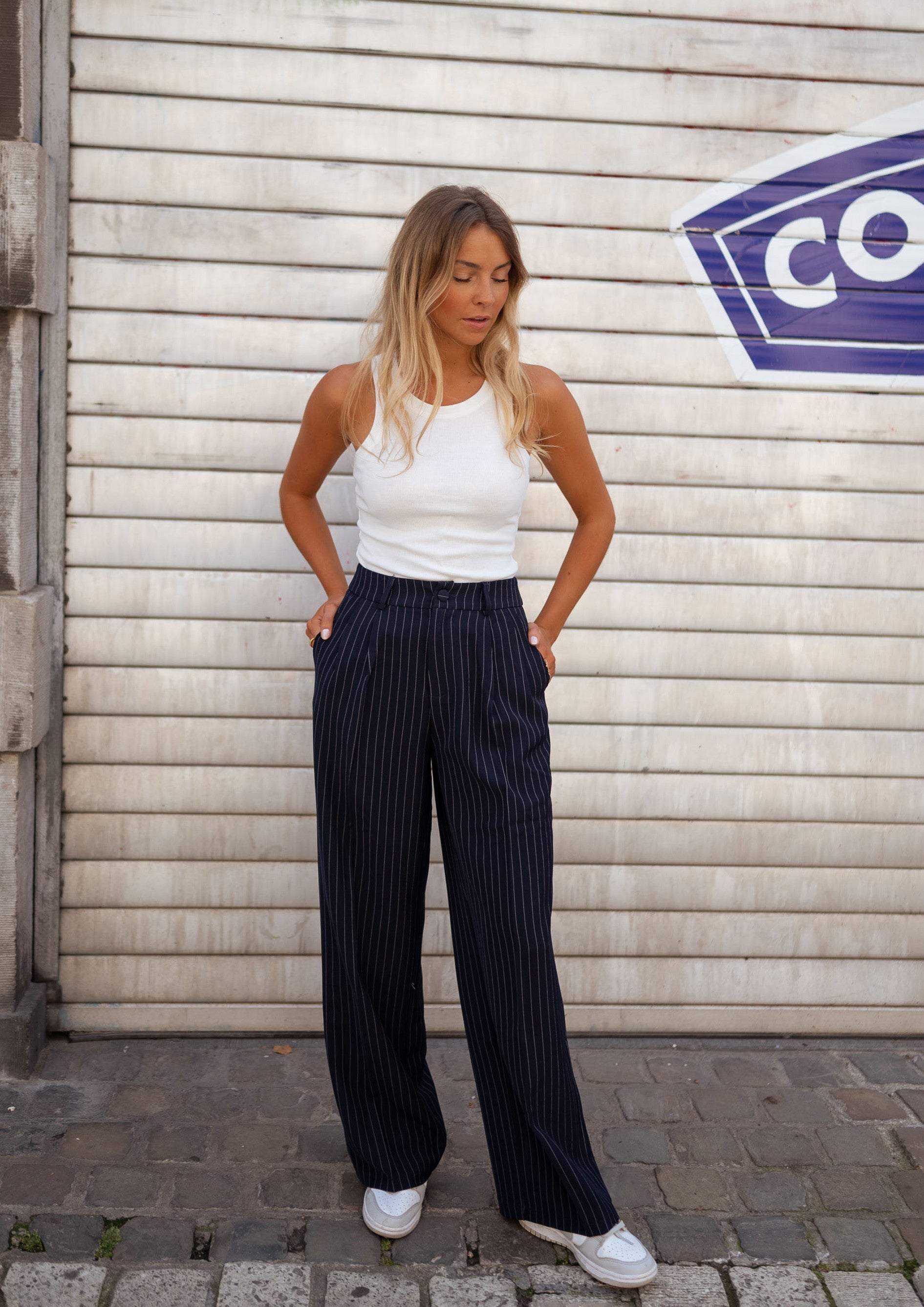 • Pantalon à lignes blanches en pointillé (voir photos)