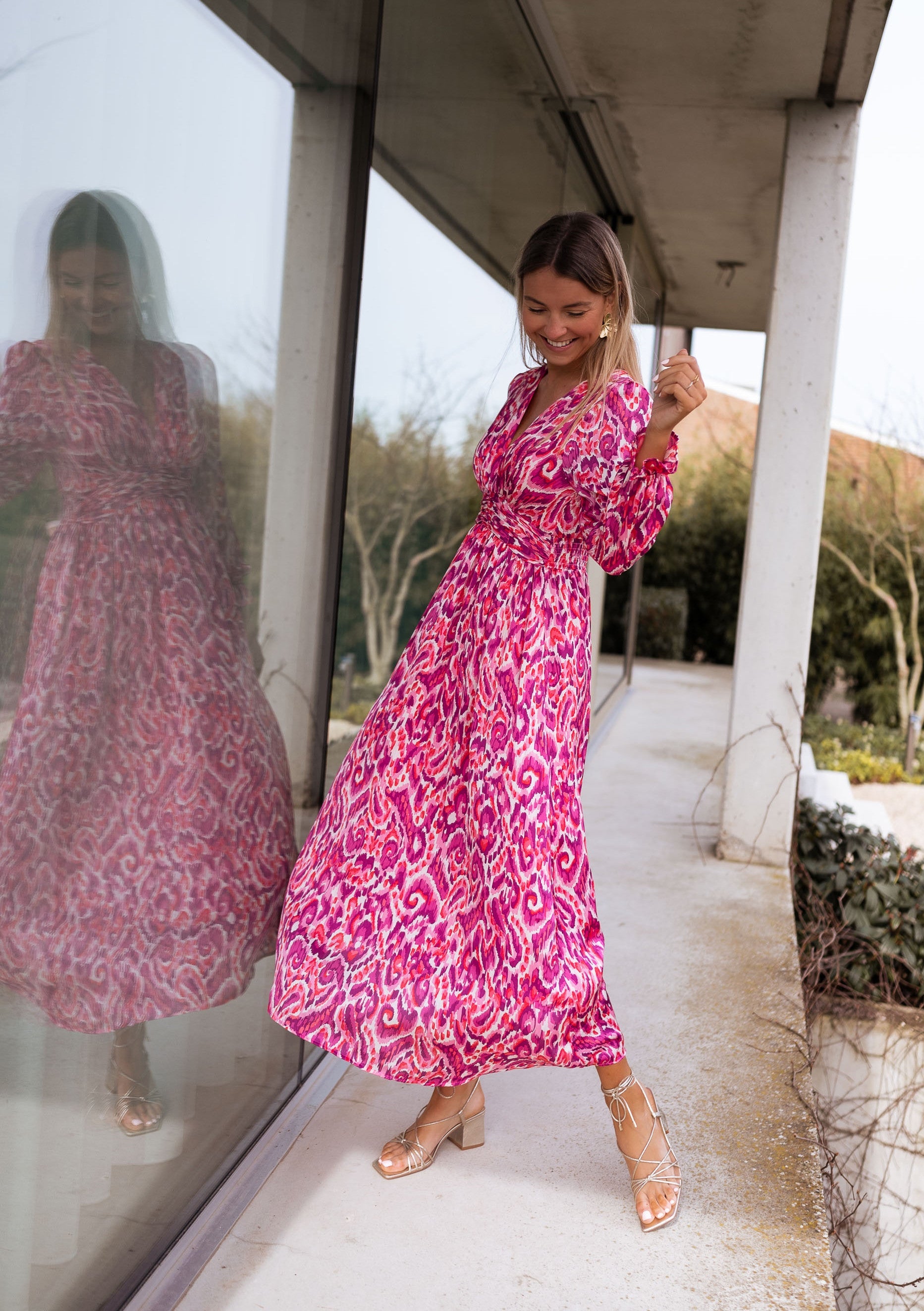 Robe Farella - rose à motifs
