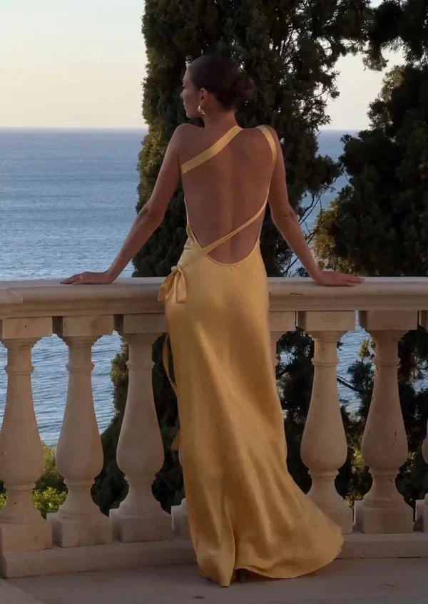 SYLVIA | ROBE LONGUE ASYMÉTRIQUE EN SATIN DOS NU