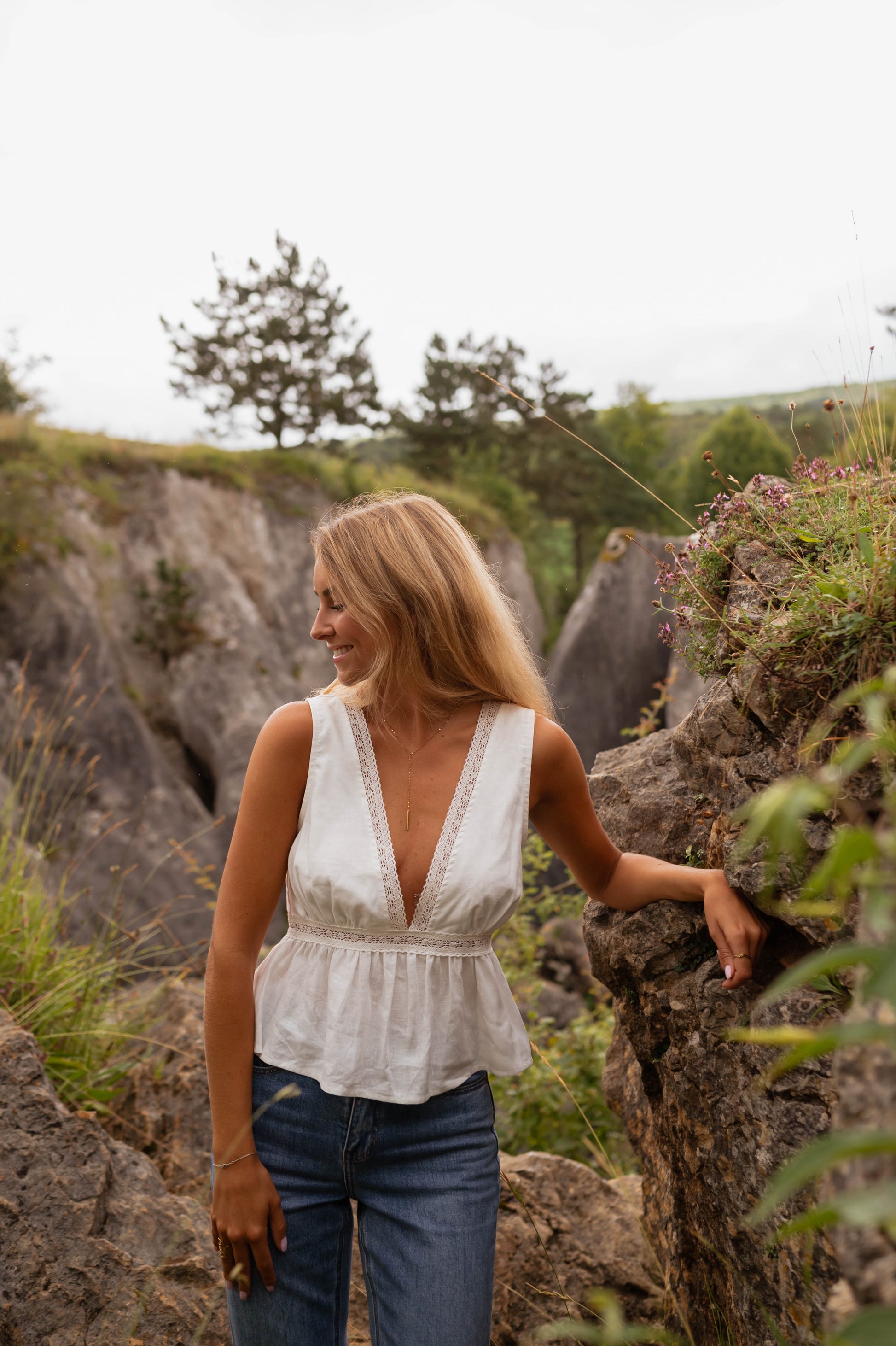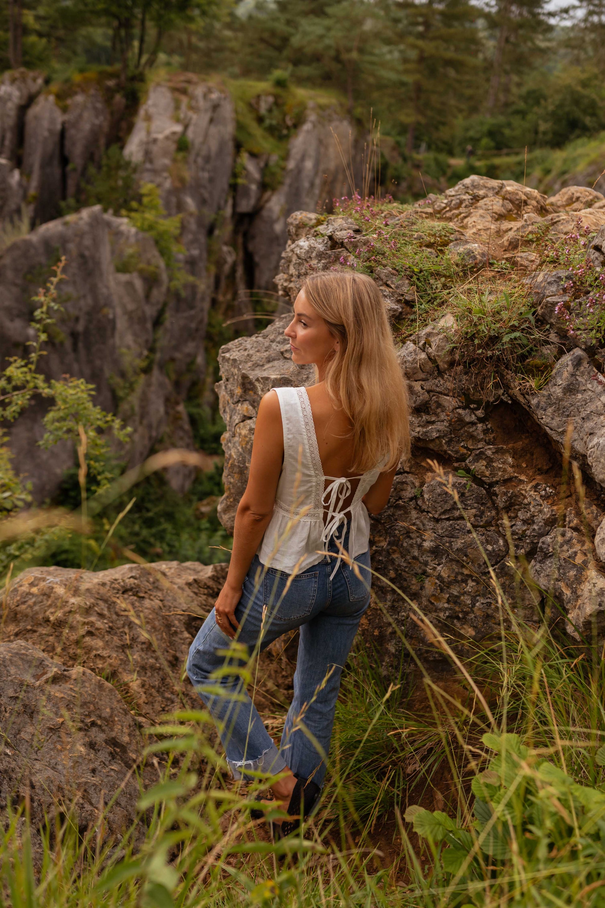 • Ophélie porte le jeans Maddie bleu