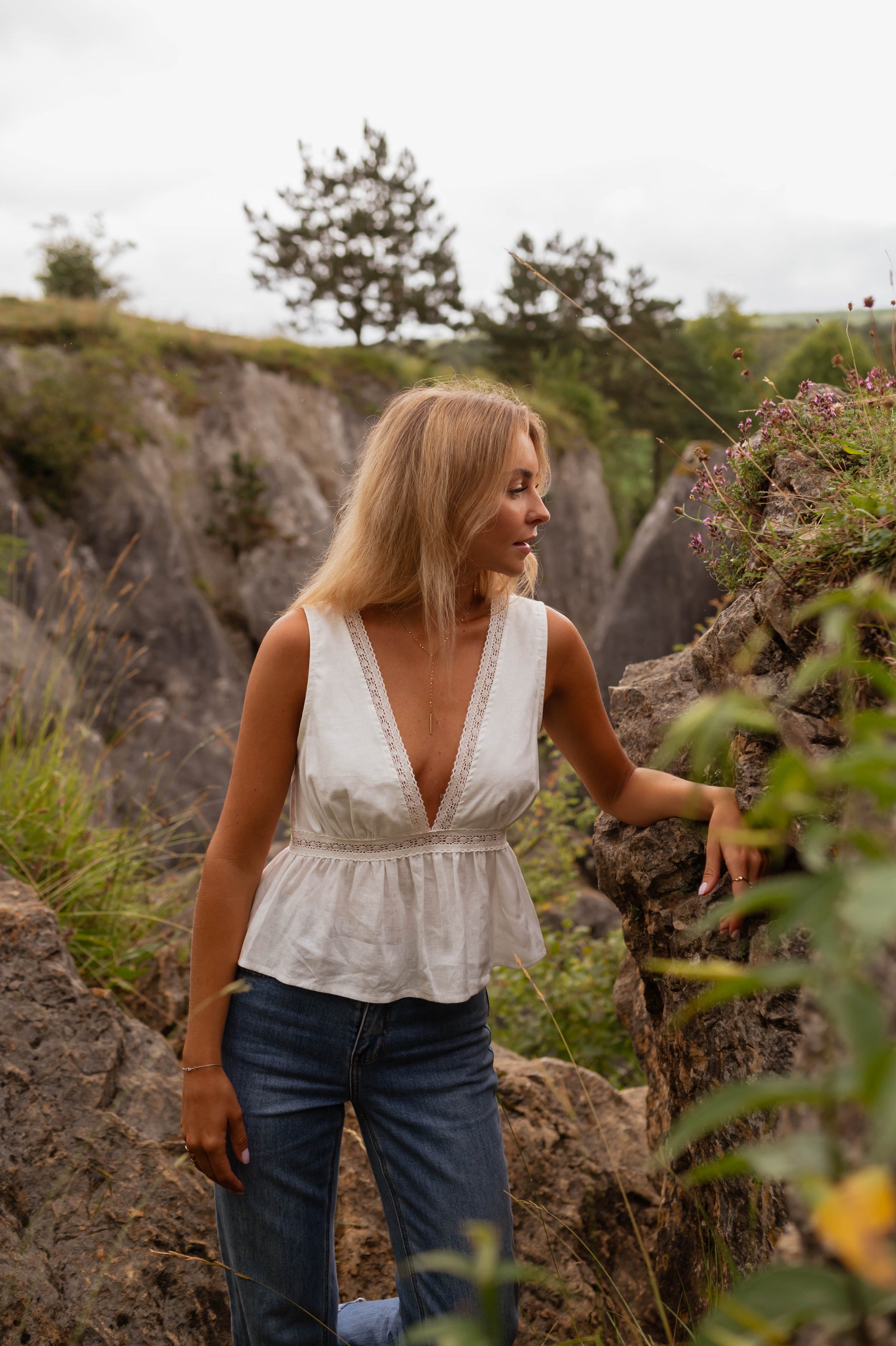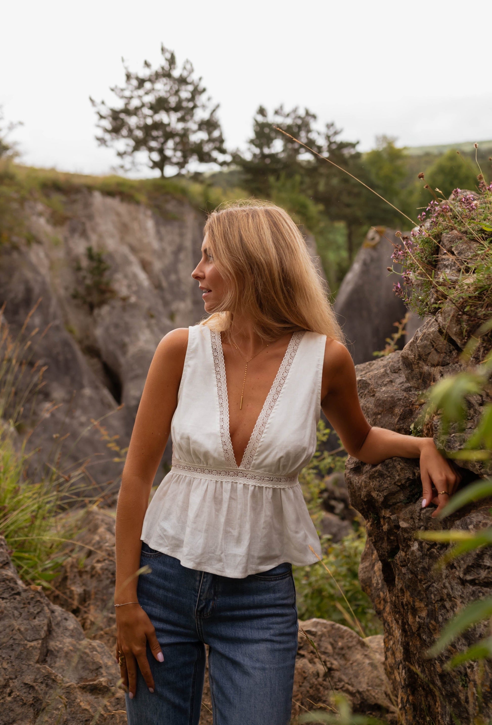 • Décolleté en V profond