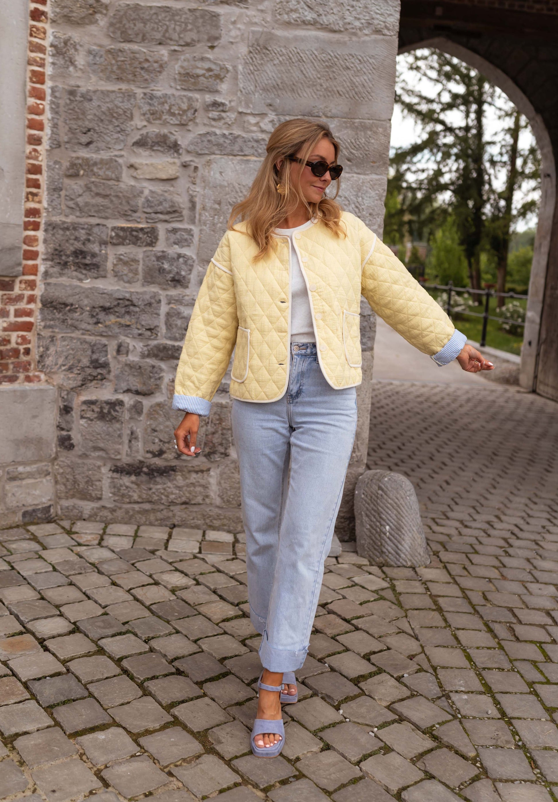 • Nos modèles portent le jeans Maddie bleu clair et le t-shirt Lauren blanc